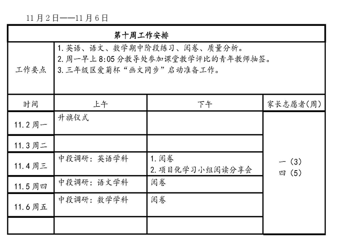 2020学年第一学期工作安排(第10周)